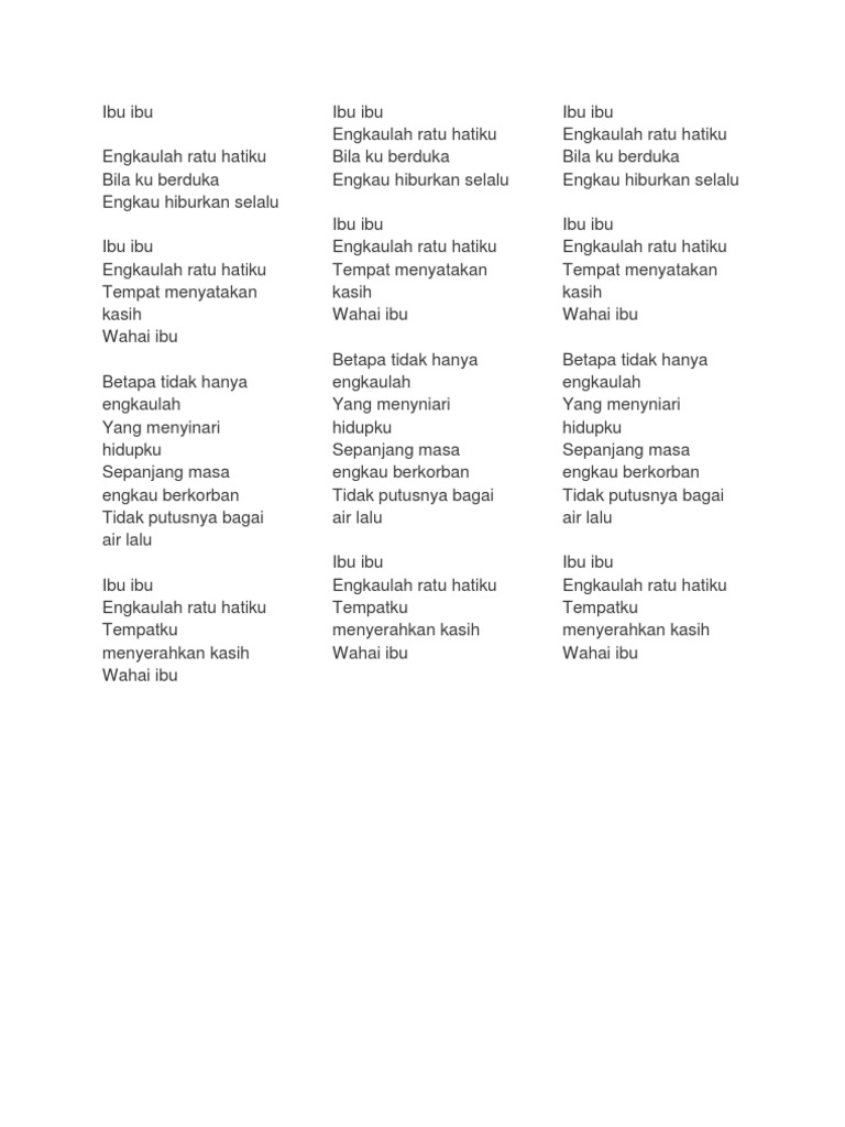 Ibu Engkau Ratu Hatiku Lirik Pdf